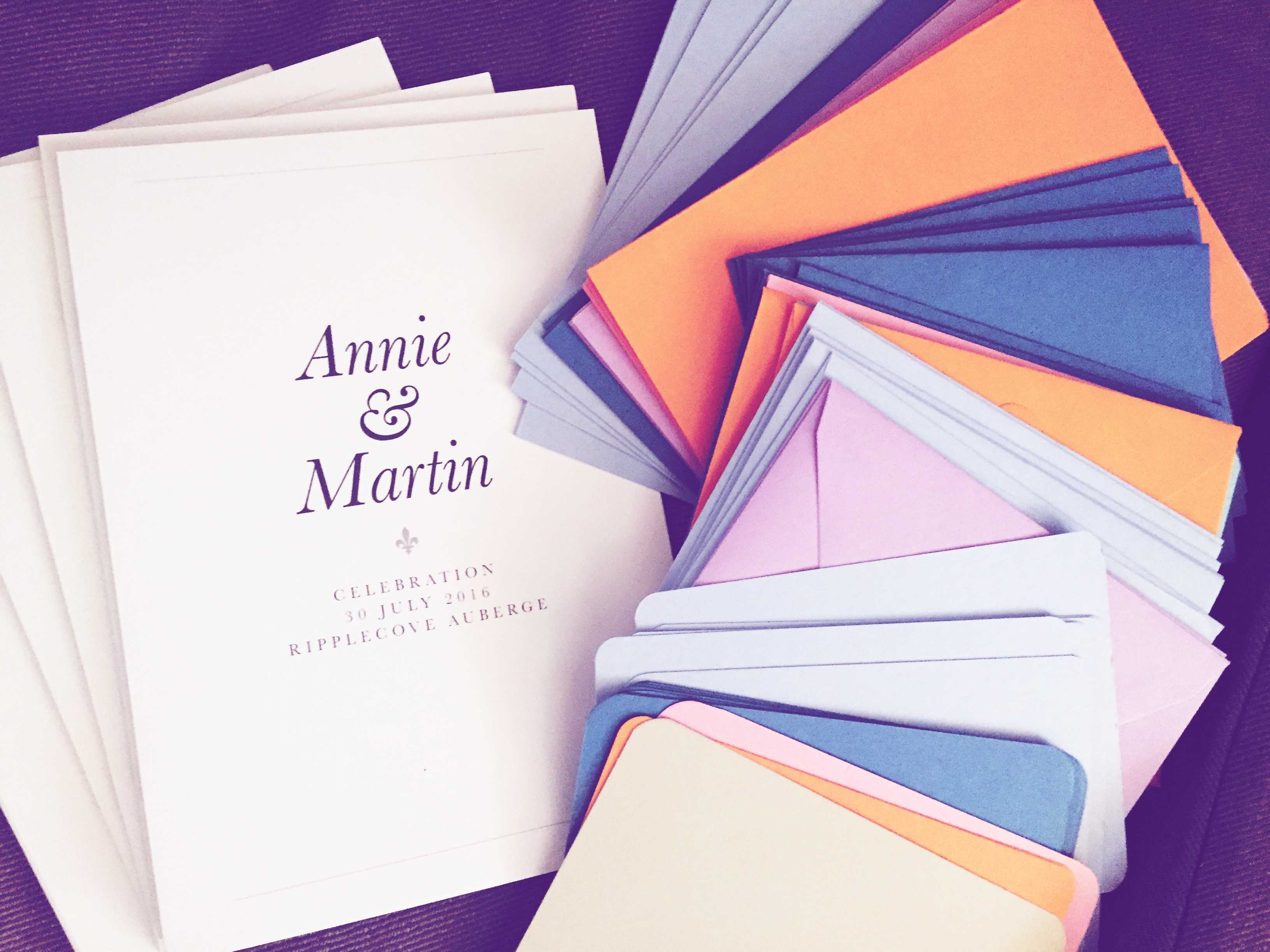 The paper… here is the man (a designer), going into the shop to find really nice paper and envelopes. Perfect for colour coding the tables. Half an hour later, he goes to pay and the cashier said: “$180”. What?! They were like 90 cents each. There was no way he was going to go back to pick something else. Oh well… nice and expensive paper will do. Go with the flow!